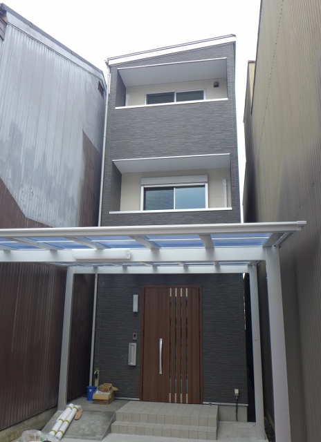 左側側面、 こちらも境界線ギリギリの工事でした。